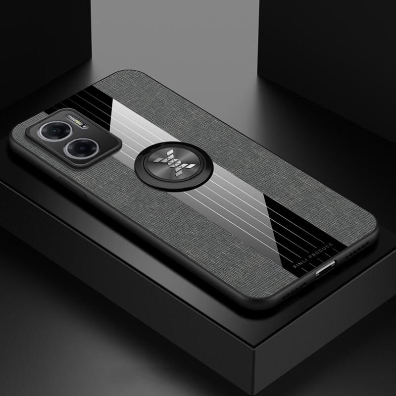 Θήκη κινητού τηλεφώνου TPU με υφή υφάσματος Stitching Cloth για Xiaomi Redmi Note 11E XINLI με δακτύλιο στήριξης (Μαύρο) (XINLI)