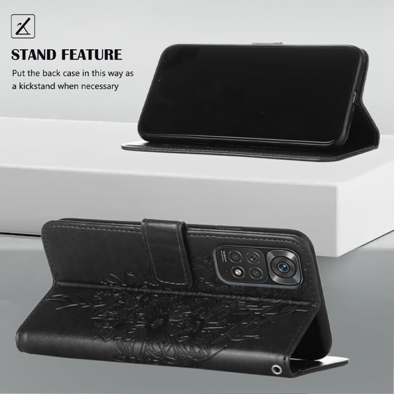 Θήκη τηλεφώνου από δέρμα με ανάγλυφο σχέδιο πεταλούδας για Xiaomi Redmi Note 11S / 11 4G Global (Γκρι)