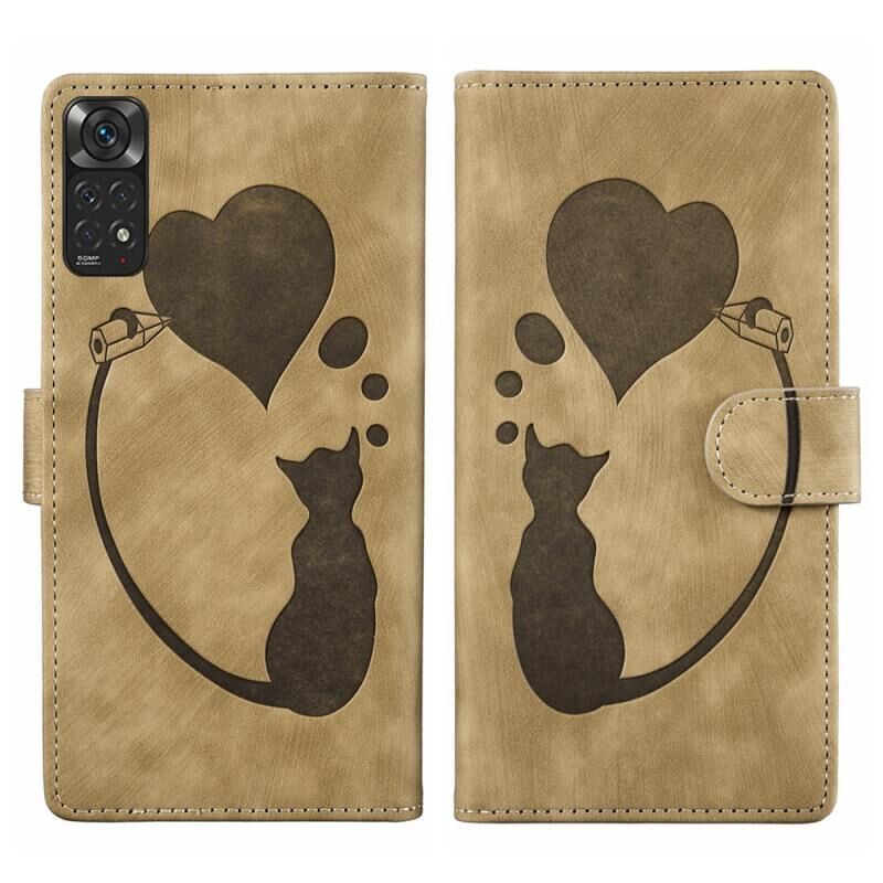 Θήκη τηλεφώνου από δέρμα με ανάγλυφο σχέδιο καρδιάς και γάτας για Xiaomi Redmi Note 11S 4G / Note 12S (Βερίκοκο)