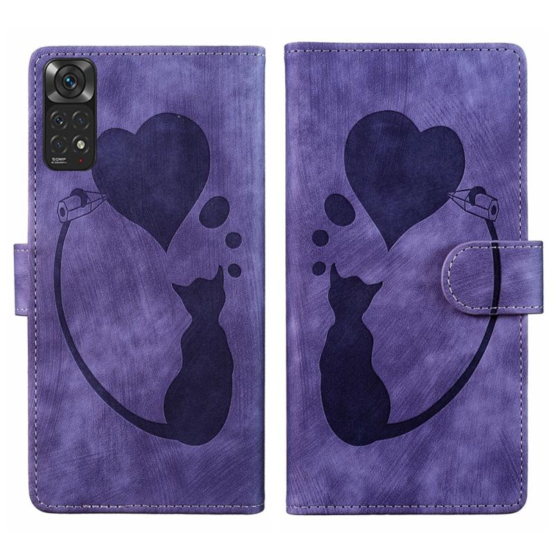 For Xiaomi Redmi Note 11S 4G / Note 12S Pen Heart Cat Embossed Leather Phone Case(Purple)
