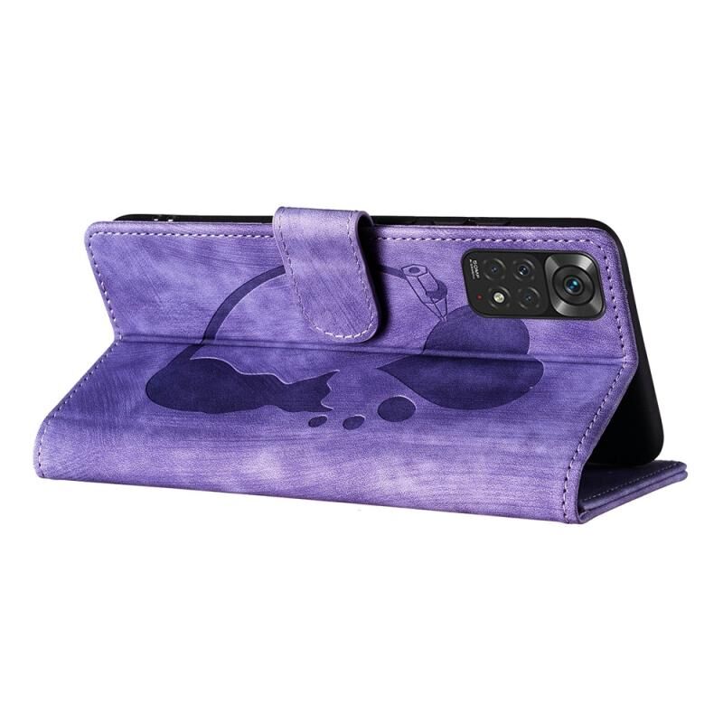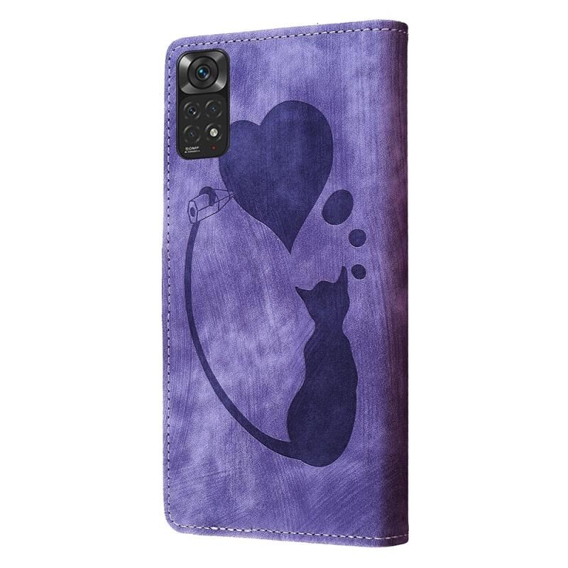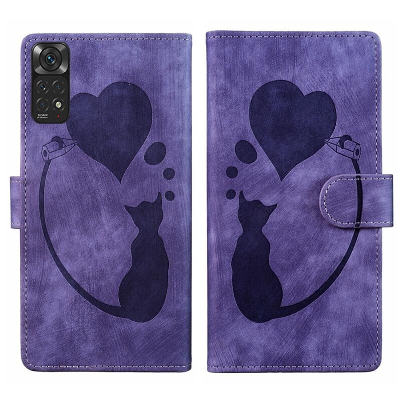 Θήκη τηλεφώνου από δέρμα με ανάγλυφο σχέδιο καρδιάς και γάτας για Xiaomi Redmi Note 11S 4G / Note 12S (Πορτοκαλί)