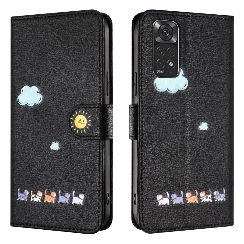 For Xiaomi Redmi Note 11s Cartoon Cats Leather Phone Case(Black)