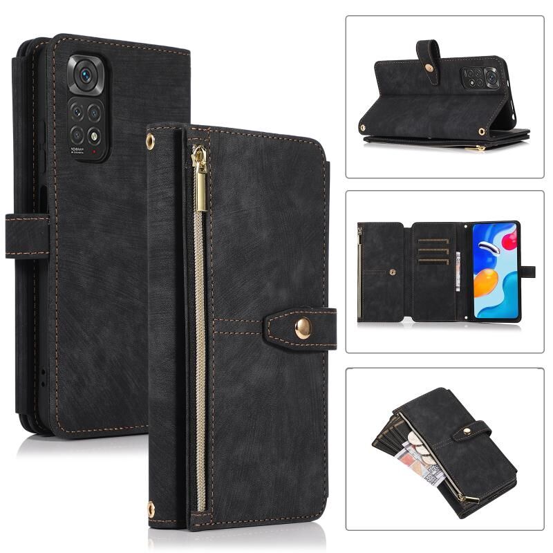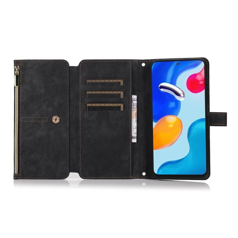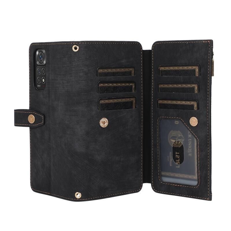 Για Xiaomi Redmi Note 11s Dream 9-κάρτα πορτοφόλι φερμουάρ τσάντα δερμάτινη θήκη τηλεφώνου (μαύρο)