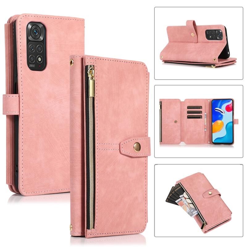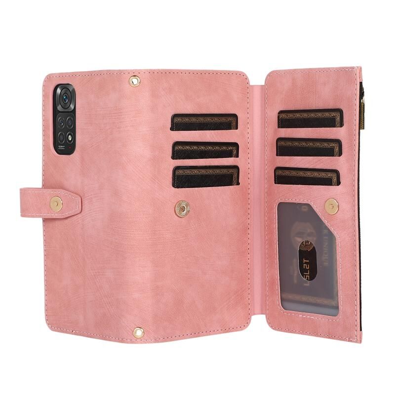 Για Xiaomi Redmi Note 11s Dream 9-κάρτα πορτοφόλι φερμουάρ τσάντα δερμάτινη θήκη τηλεφώνου (ροζ)