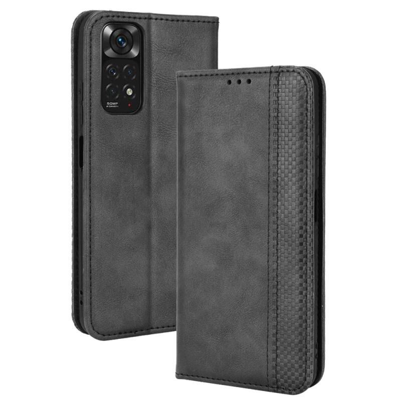 Για Xiaomi Redmi Σημείωση 11S / Σημείωση 11 4G υπερπόντια έκδοση μαγνητική πόρπη ρετρό τρελό άλογο δερμάτινη θήκη τηλεφώνου (μαύρο)