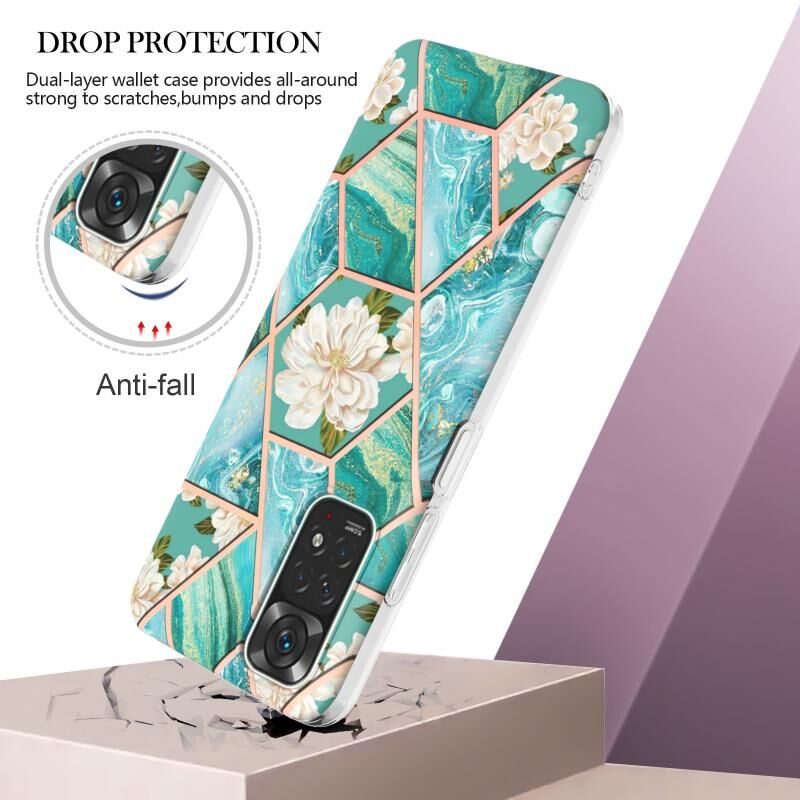 Θήκη τηλεφώνου TPU με σχέδιο μαρμάρου και λουλουδιών σε κομμάτια για Xiaomi Redmi Note 11S/ Note 11 4G (Ροζ Λουλούδι)