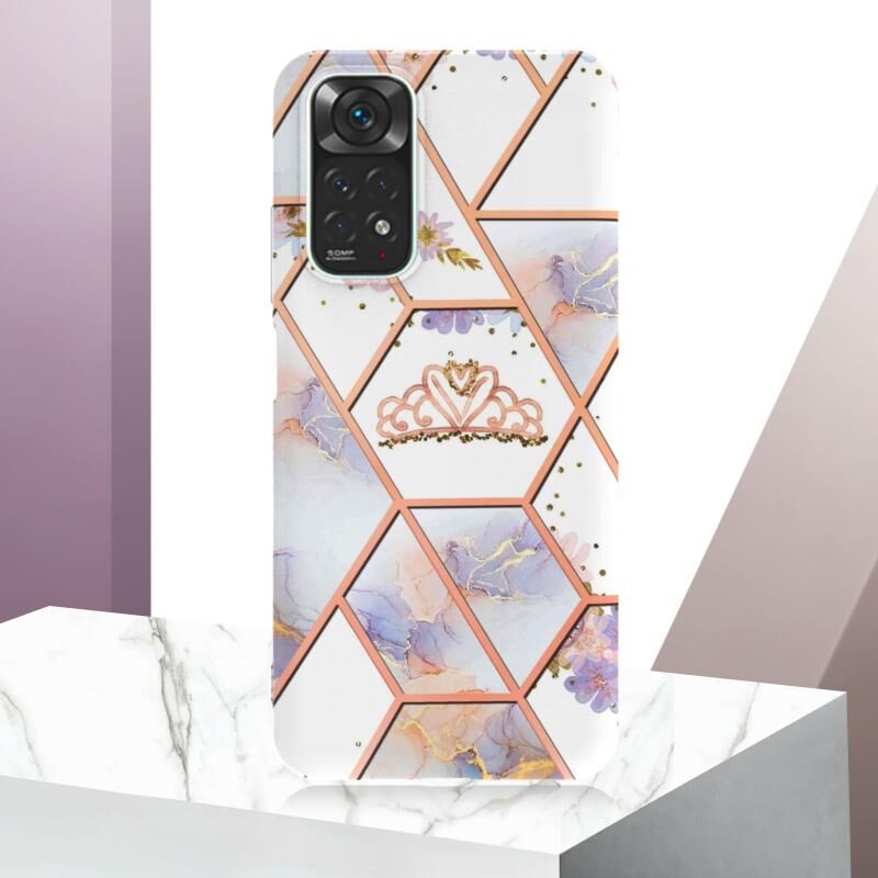 Θήκη τηλεφώνου TPU με σχέδιο μαρμάρου και λουλουδιών σε σπαστό στυλ για Xiaomi Redmi Note 11S/ Note 11 4G (Κόκκινο)