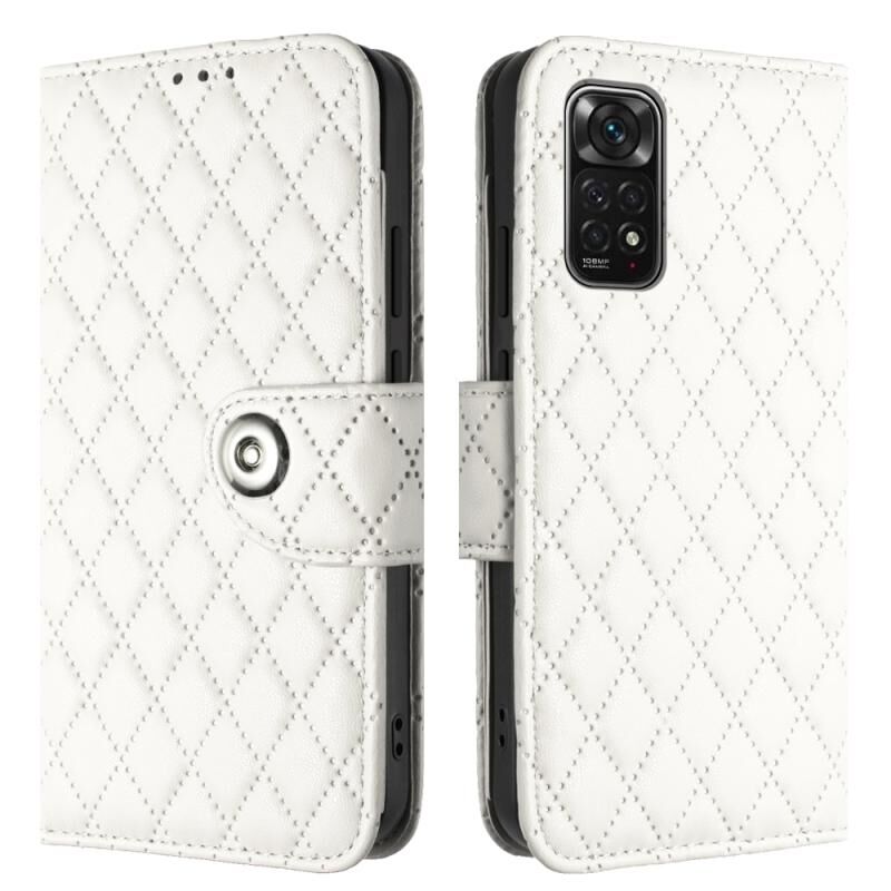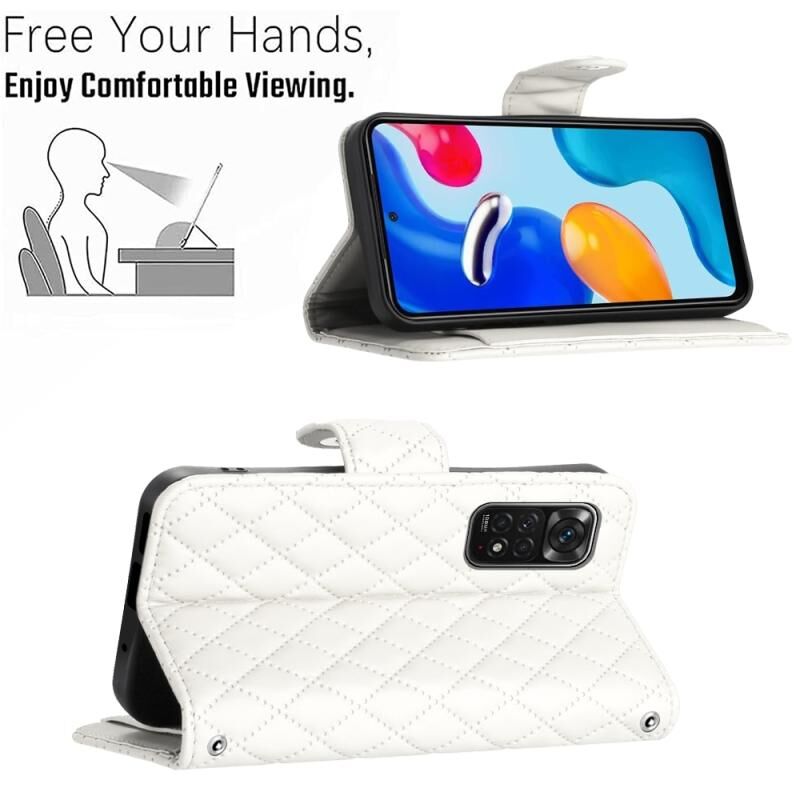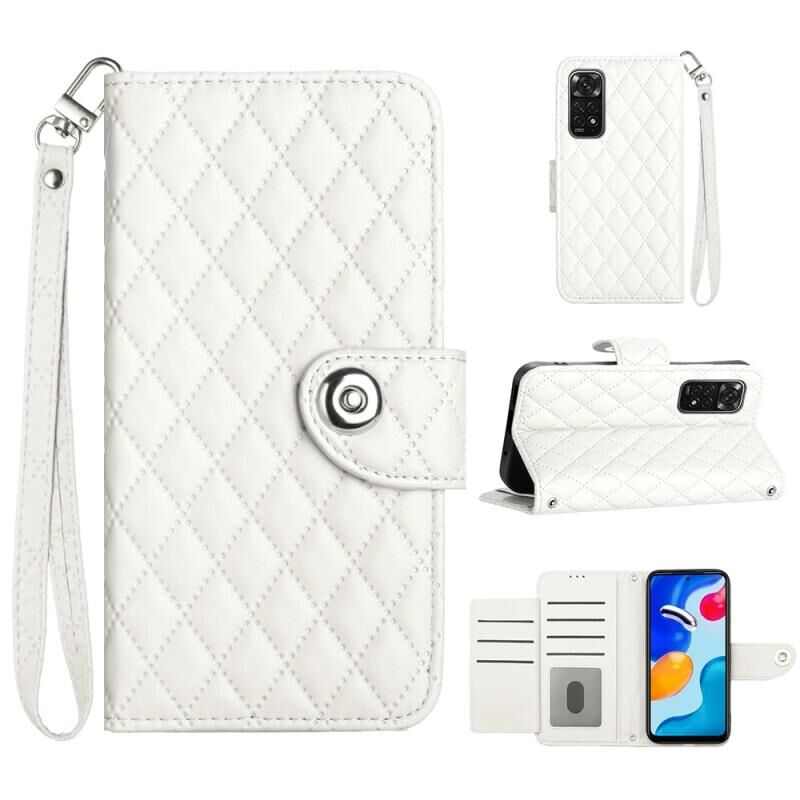 Για Xiaomi Redmi Note 11S / Note 11 Global Rhombic Texture Flip δερμάτινη θήκη τηλεφώνου με κορδόνι (Λευκό)