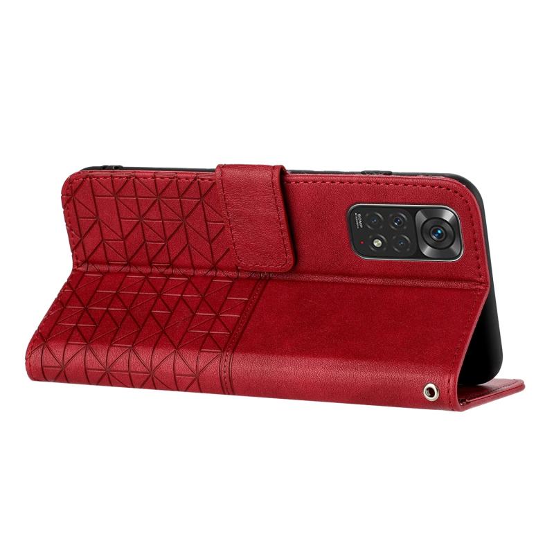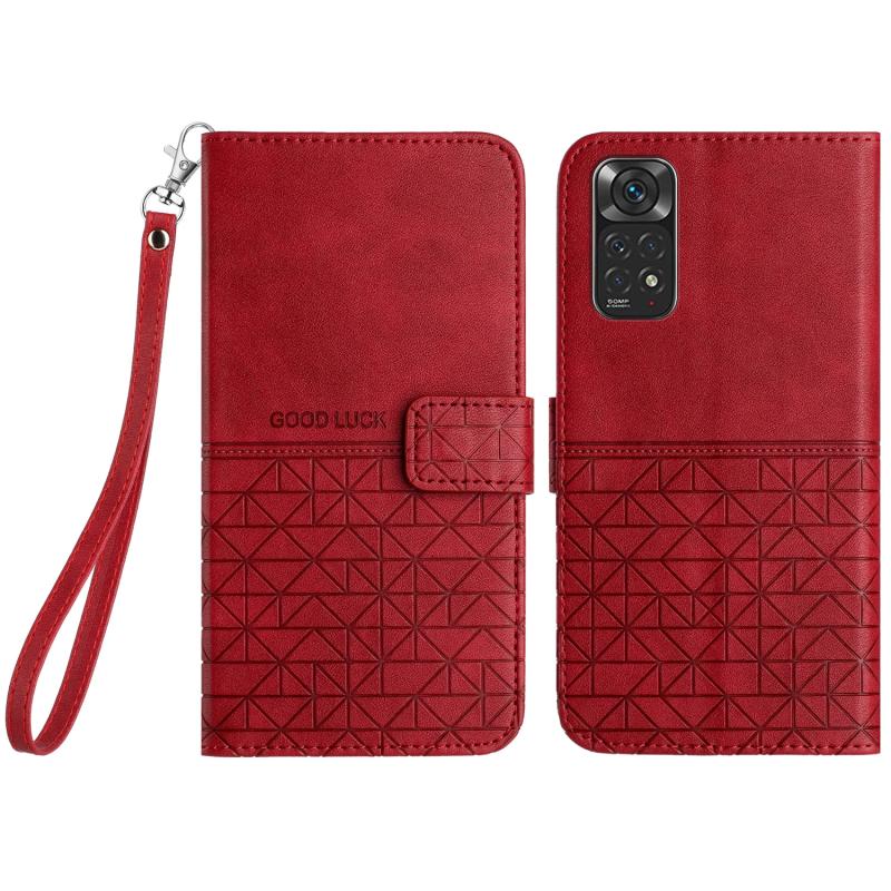 Θήκη δερμάτινη με κορδόνι για Xiaomi Redmi Note 11S - Ρομβικό σχέδιο (Κόκκινο)