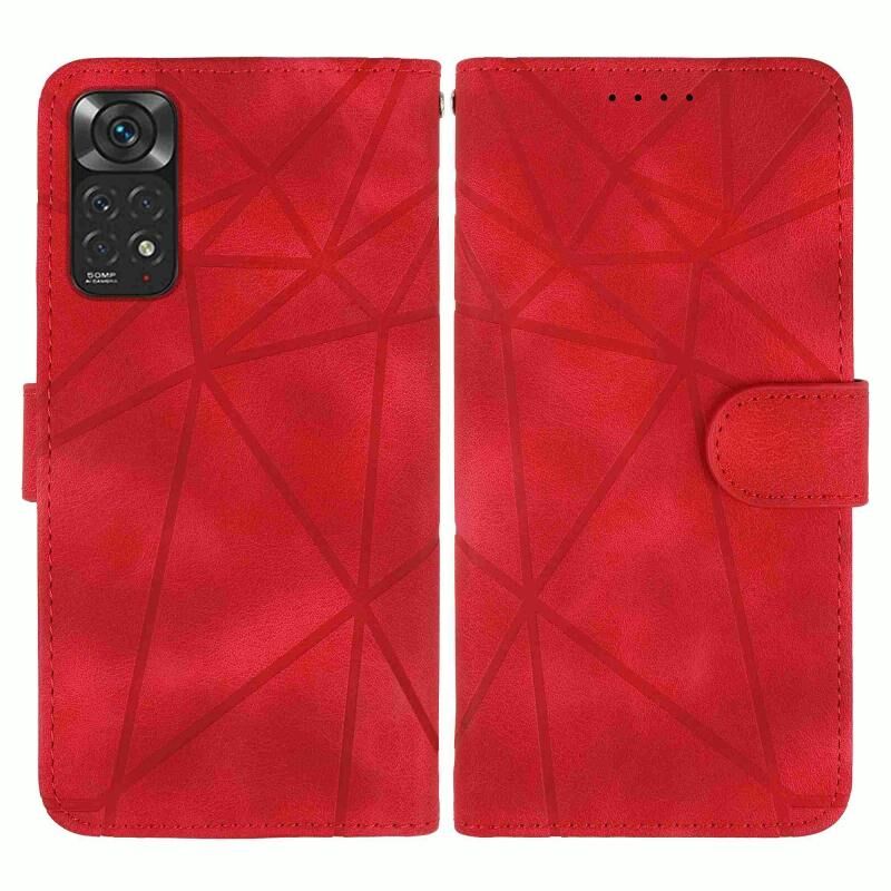 Για Xiaomi Redmi Note 11S Skin Feel γεωμετρικές γραμμές δερμάτινη θήκη τηλεφώνου (κόκκινο)