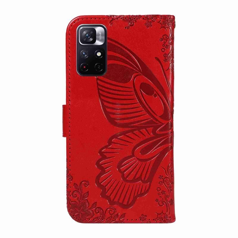 Θήκη τηλεφώνου από δέρμα με ανάγλυφο σχέδιο πεταλούδας Swallowtail για Xiaomi Redmi Note 11T 5G / 11s 5G (Κόκκινο)