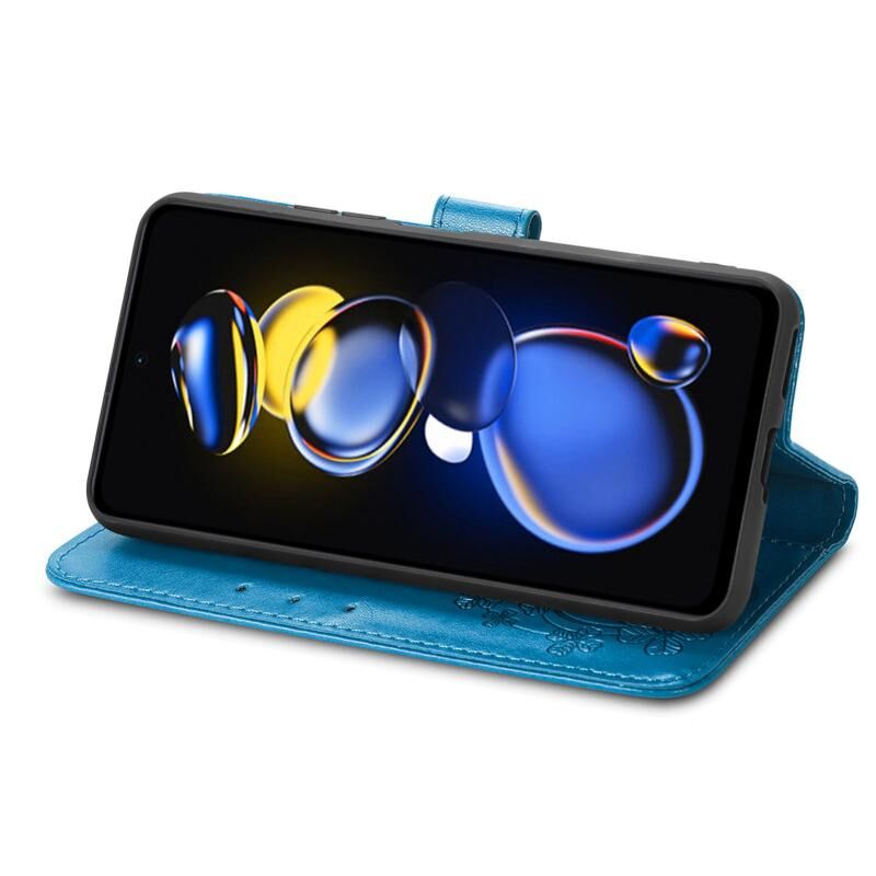 Για Xiaomi Redmi Note 11T 5G Four-leaf κούμπωμα ανάγλυφο πόρπη Flip δέρμα τηλέφωνο υπόθεση (μπλε)