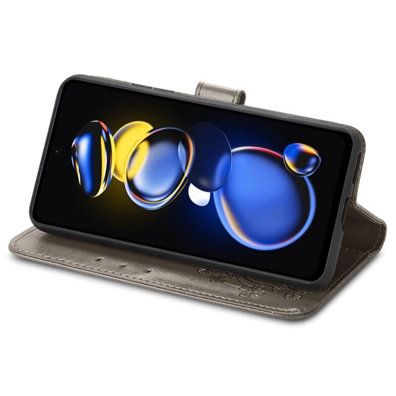Για Xiaomi Redmi Note 11T 5G Four-leaf κούμπωμα ανάγλυφο πόρπη Flip δέρμα τηλέφωνο υπόθεση (γκρι)