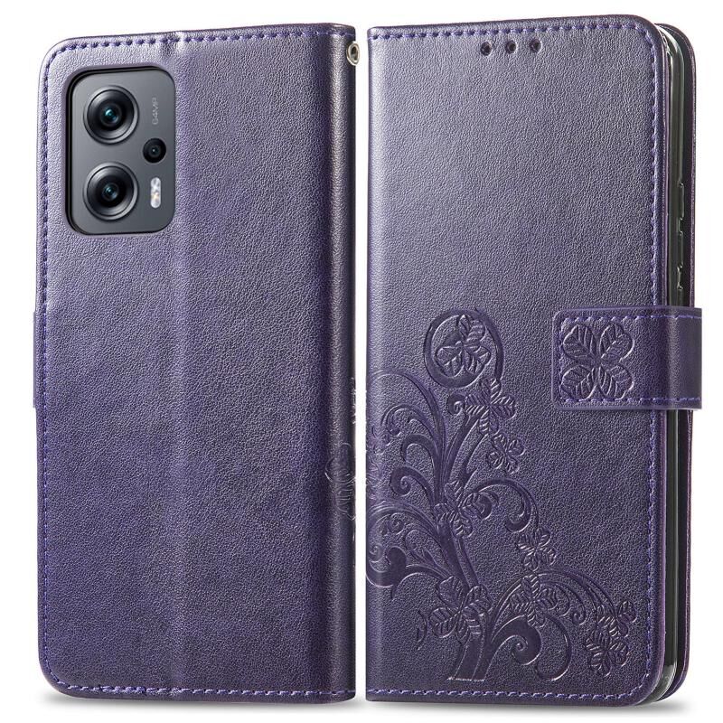 Για Xiaomi Redmi Note 11T 5G Four-leaf κούμπωμα ανάγλυφο πόρπη Flip δέρμα τηλέφωνο υπόθεση (μωβ)