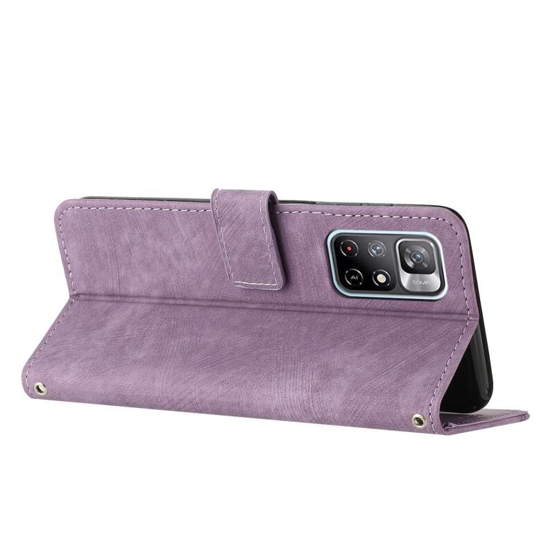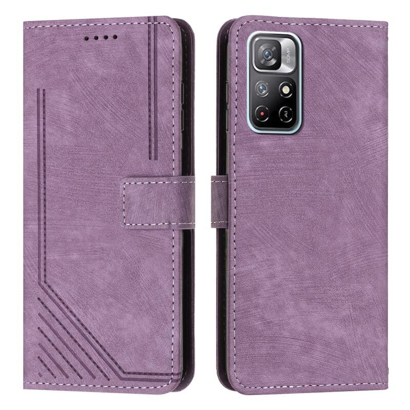 Για Xiaomi Redmi Note 11T 5G / Poco M4 Pro 5G δέρμα αίσθηση Stripe μοτίβο δερμάτινη θήκη τηλεφώνου με κορδόνι (μωβ)