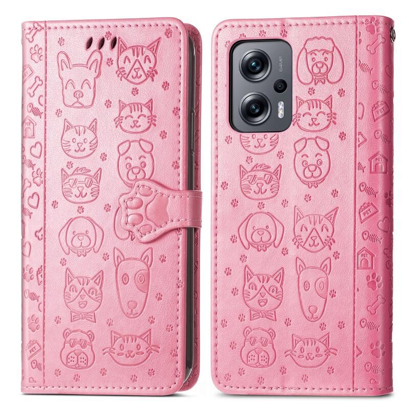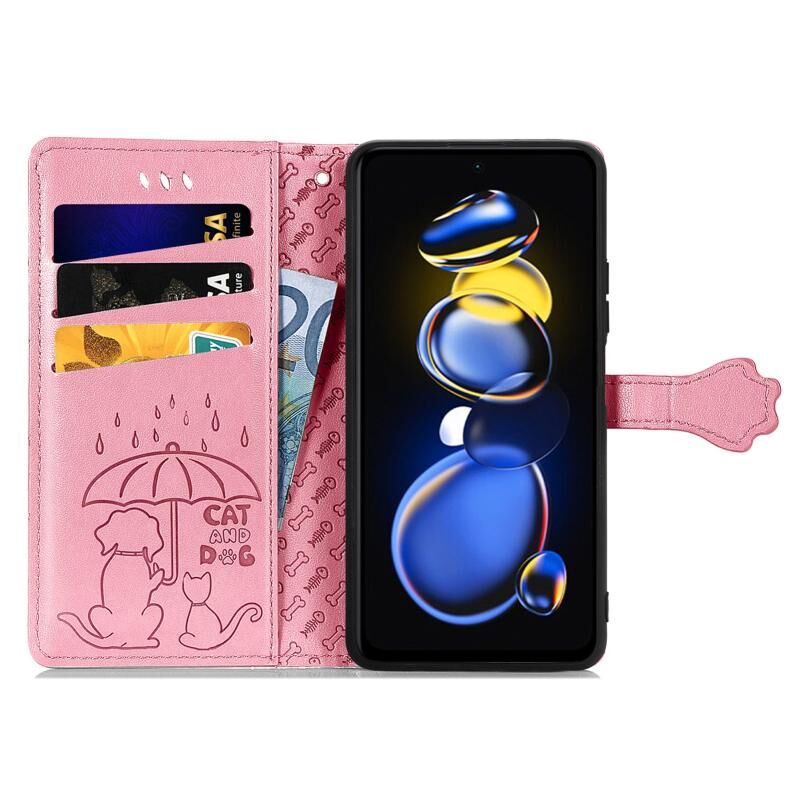 Θήκη τηλεφώνου από δέρμα με ανάγλυφο σχέδιο γάτας και σκύλου για Xiaomi Redmi Note 11T (Μωβ)