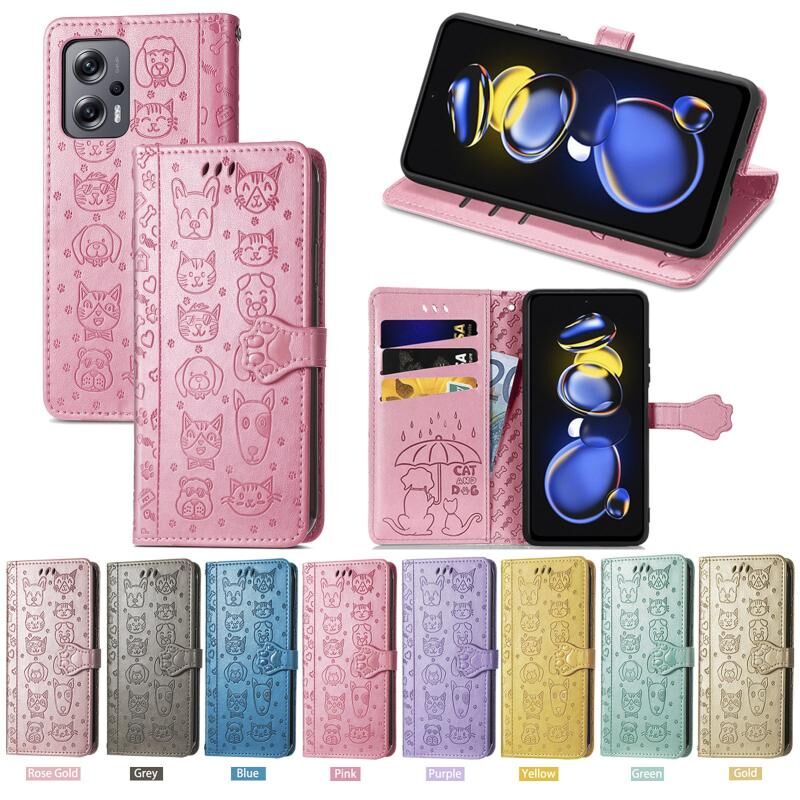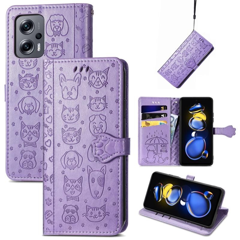 Θήκη τηλεφώνου από δέρμα με ανάγλυφο σχέδιο γάτας και σκύλου για Xiaomi Redmi Note 11T (Μωβ)