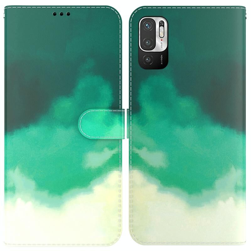 Για Xiaomi Redmi Note 11T Pro / 11T Pro + 5G νερομπογιά μοτίβο Flip δέρμα τηλέφωνο υπόθεση (Cyan πράσινο)