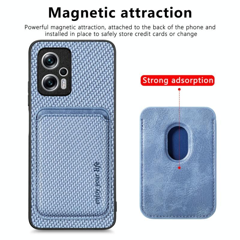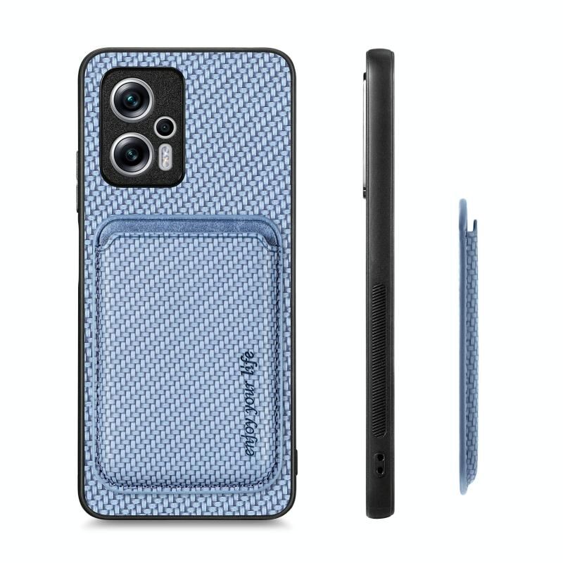 Θήκη τηλεφώνου Xiaomi Redmi Note 11T Pro 5G από ανθρακονήματα και δέρμα με μαγνητική κάρτα (Μαύρο)