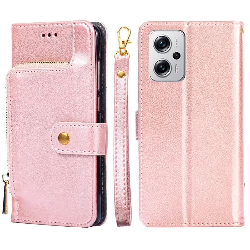 Για Xiaomi Redmi Note 11T Pro 5G / Note 11T Pro + 5G φερμουάρ τσάντα PU + TPU οριζόντια Flip δέρμα τηλέφωνο υπόθεση (Rose Gold)
