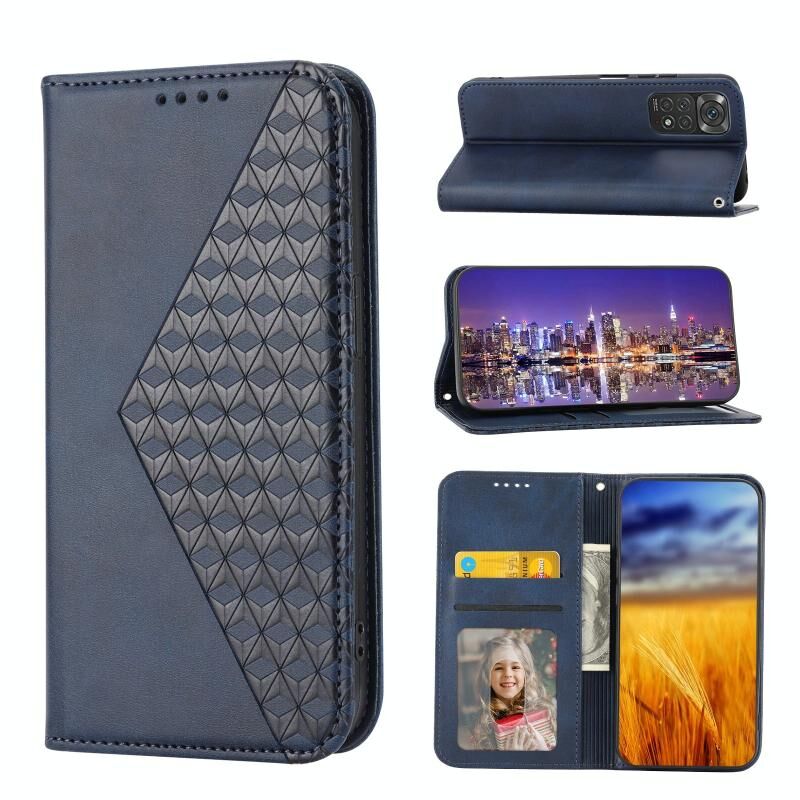 Για Xiaomi Redmi Note 11T Pro Cubic Grid Calf Texture μαγνητικό κλείσιμο δερμάτινη θήκη τηλεφώνου (μπλε)