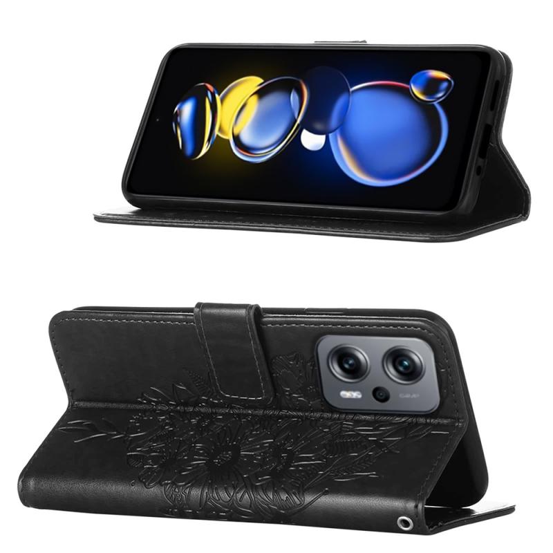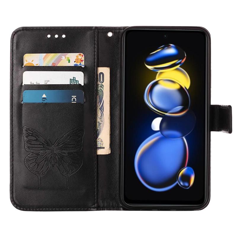 Θήκη τηλεφώνου από δέρμα με ανάγλυφο σχέδιο πεταλούδας για Xiaomi Blackmi Note 11T Pro (Κόκκινο)