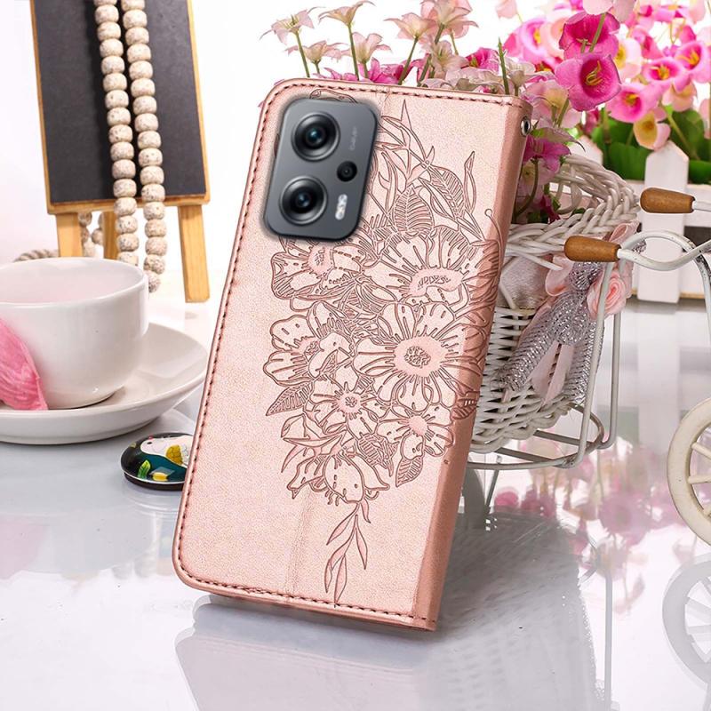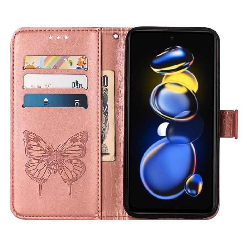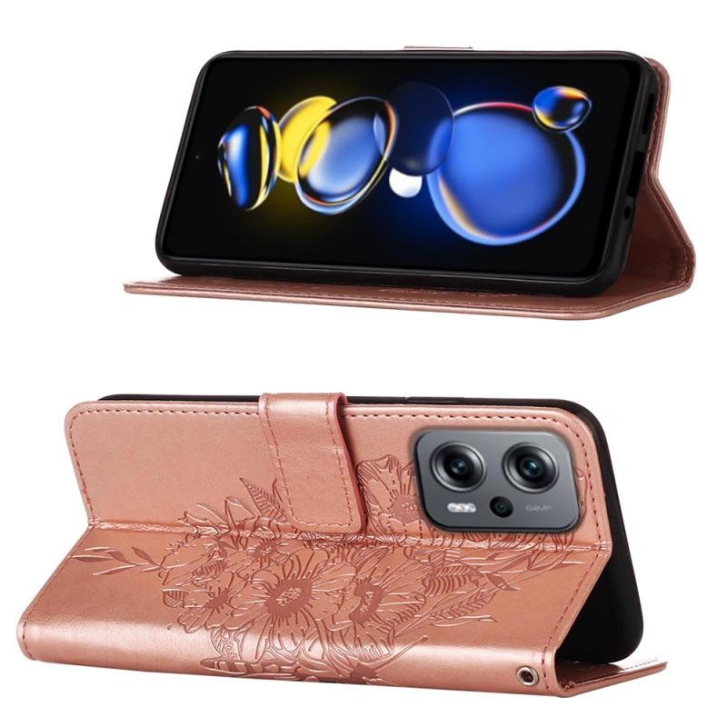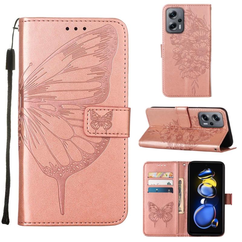 Θήκη τηλεφώνου από δέρμα με ανάγλυφο σχέδιο πεταλούδας για Xiaomi Rose Goldmi Note 11T Pro (Κόκκινο)