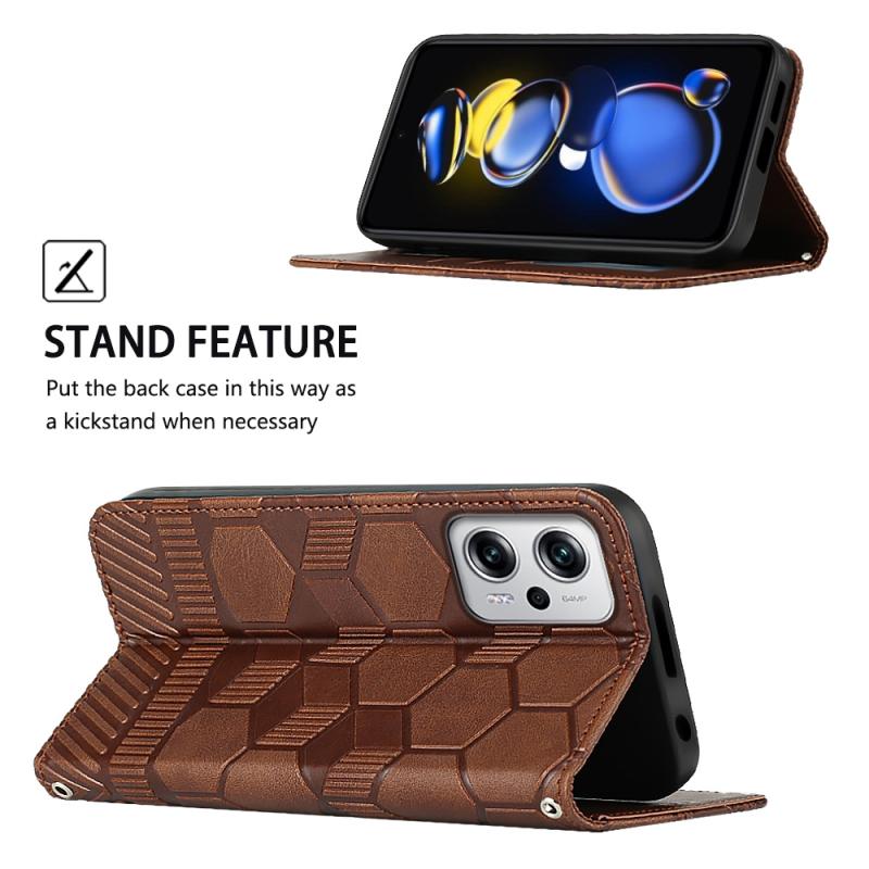 Θήκη Xiaomi Redmi Note 11T Pro Δερμάτινη Μαγνητική με Υφή Μπάλας Ποδοσφαίρου (Καφέ)