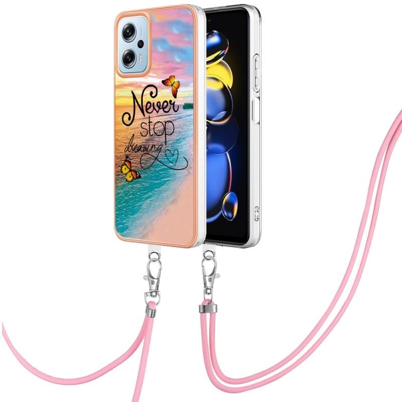 Θήκη τηλεφώνου Xiaomi Redmi Note 11T Pro/Note 11T Pro+ με επιμετάλλωση IMD TPU με κορδόνι (Όνειρο Πεταλούδας)