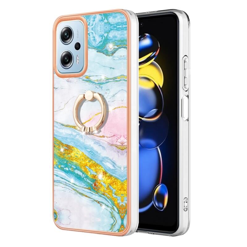 Θήκη τηλεφώνου με Ηλεκτρολυτική Επιμετάλλωση από Μάρμαρο IMD για Xiaomi Redmi Note 11T Pro / Note 11T Pro+ με Δακτύλιο Στήριξης (Πράσινο 004)