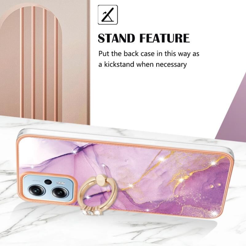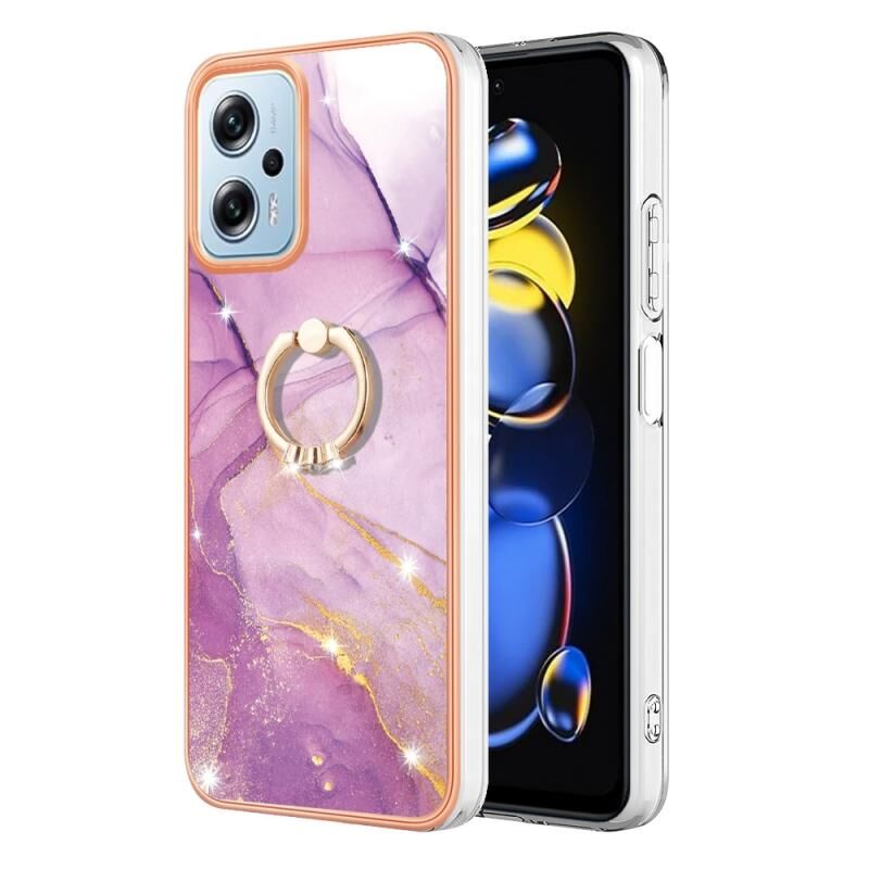 Θήκη τηλεφώνου με Ηλεκτρολυτική Επιμετάλλωση από Μάρμαρο IMD για Xiaomi Redmi Note 11T Pro / Note 11T Pro+ με Δακτύλιο Στήριξης (Μωβ 001)