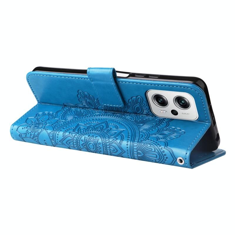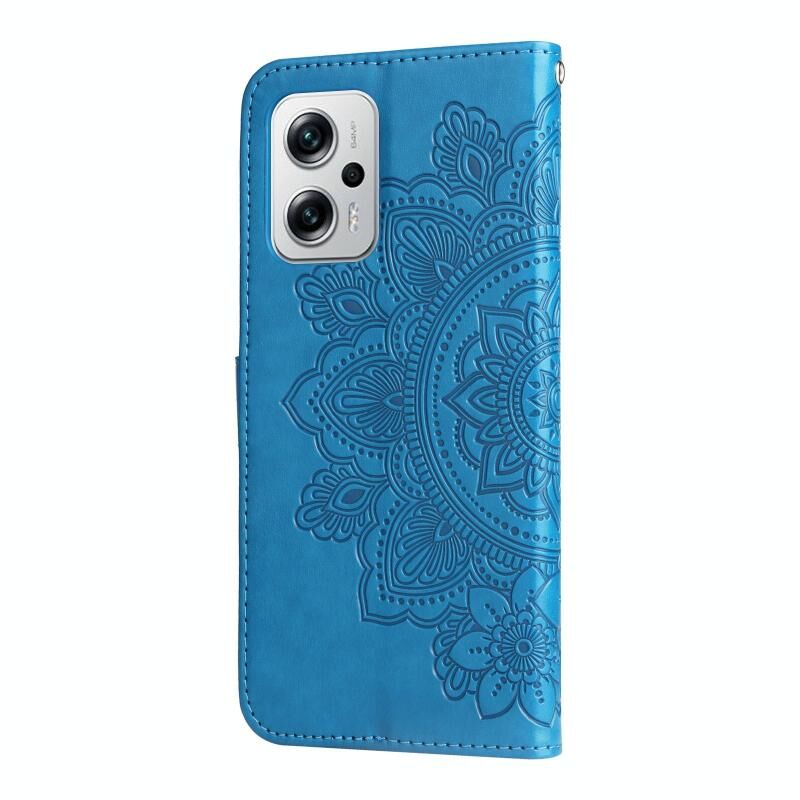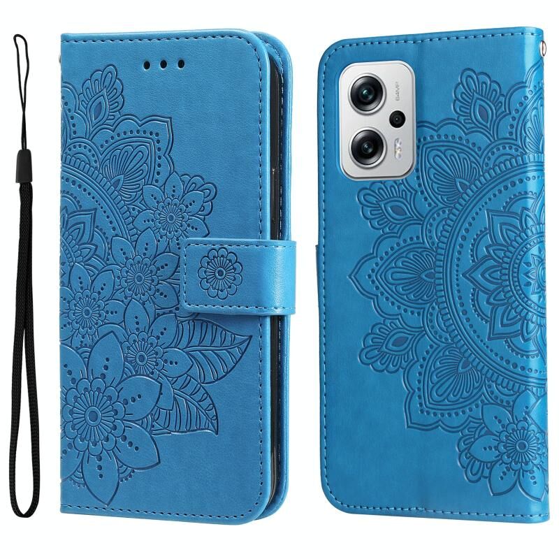 Θήκη δέρματος με ανάγλυφα λουλούδια 7 πετάλων για Xiaomi Redmi Note 11T Pro/Poco X4 GT (Μπλε)