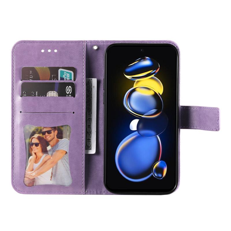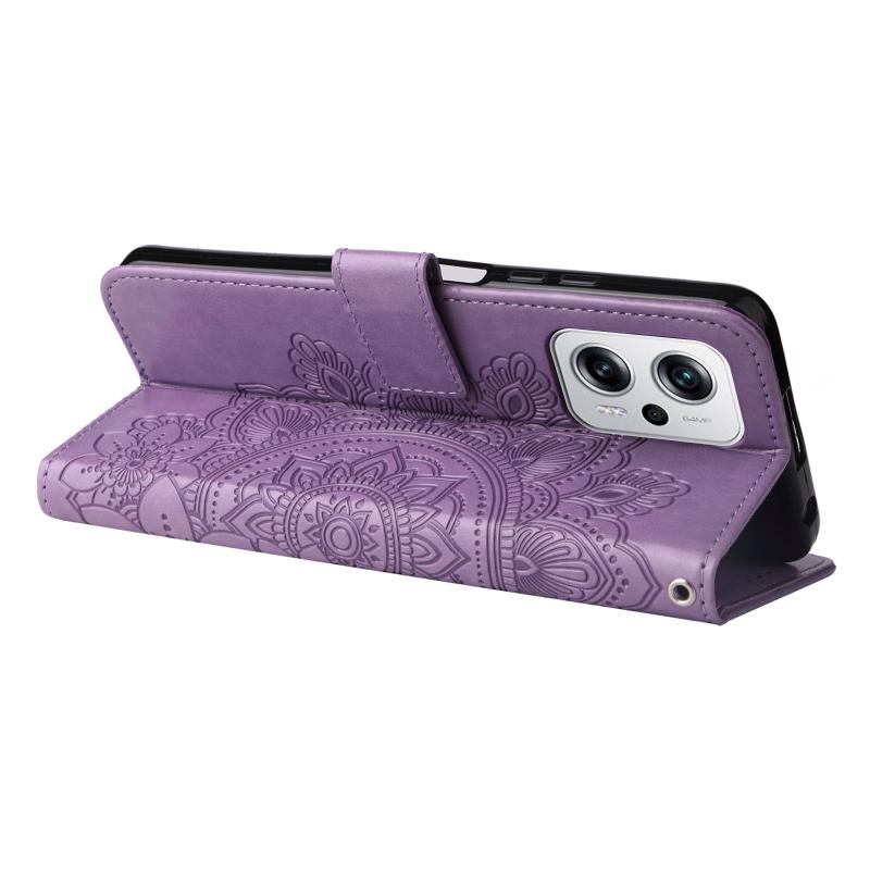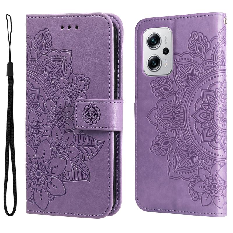 Θήκη δέρματος με ανάγλυφα λουλούδια 7 πετάλων για Xiaomi Redmi Note 11T Pro/Poco X4 GT (ανοιχτό μωβ)
