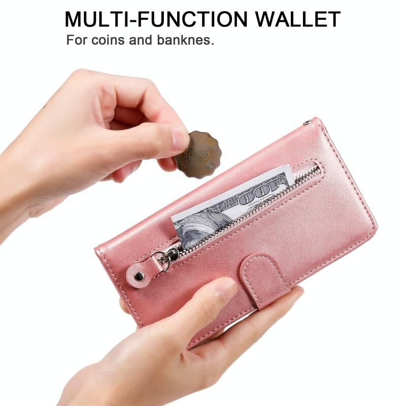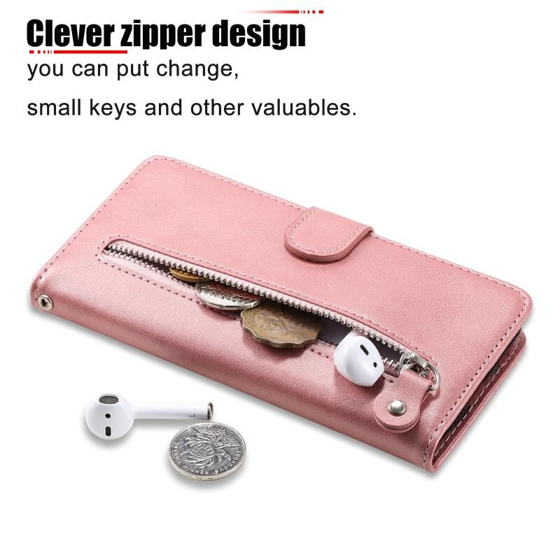 Για Xiaomi Redmi Note 11T Pro / Poco X4 GT Δερμάτινη θήκη με φερμουάρ και υφή μοσχαριού (Ροζ Χρυσό)