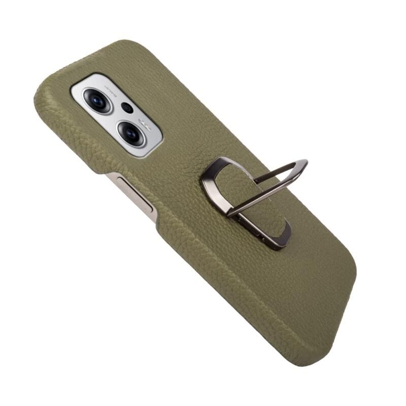Θήκη τηλεφώνου από γνήσιο δέρμα με υφή λύτσι για Xiaomi Redmi Note 11T Pro με δακτύλιο στήριξης (Λευκό)