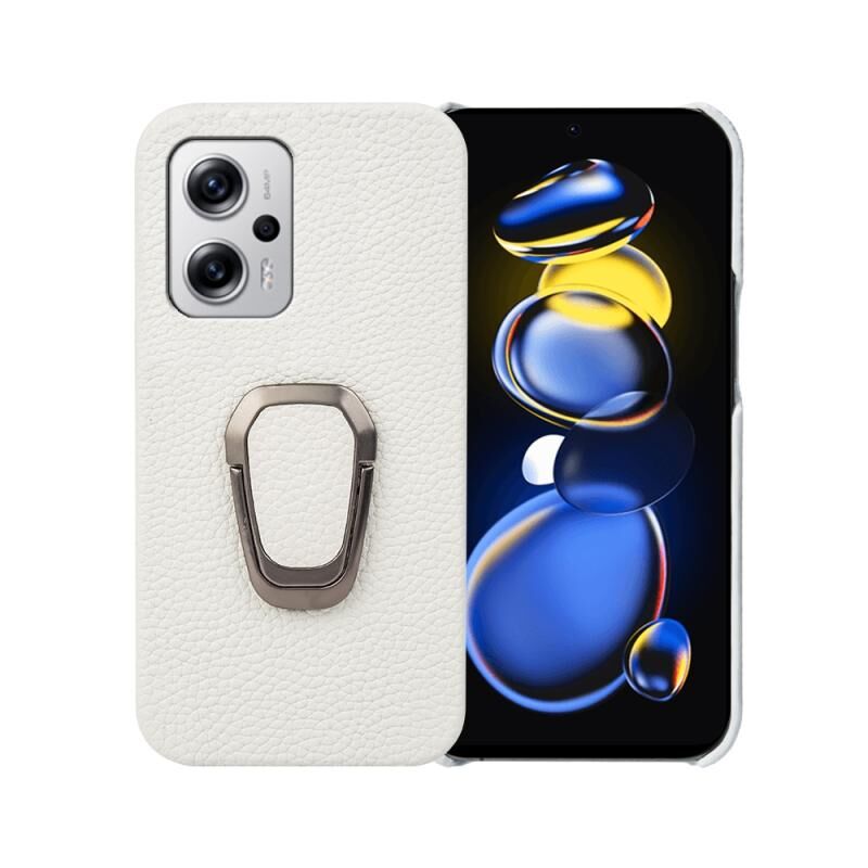 Θήκη τηλεφώνου από γνήσιο δέρμα με υφή λύτσι για Xiaomi Redmi Note 11T Pro με δακτύλιο στήριξης (Λευκό)