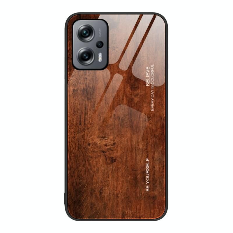 Θήκη Προστασίας από Γυαλί με Υφή Ξύλου για Xiaomi Redmi Note 11T Pro (Σκούρο καφέ)