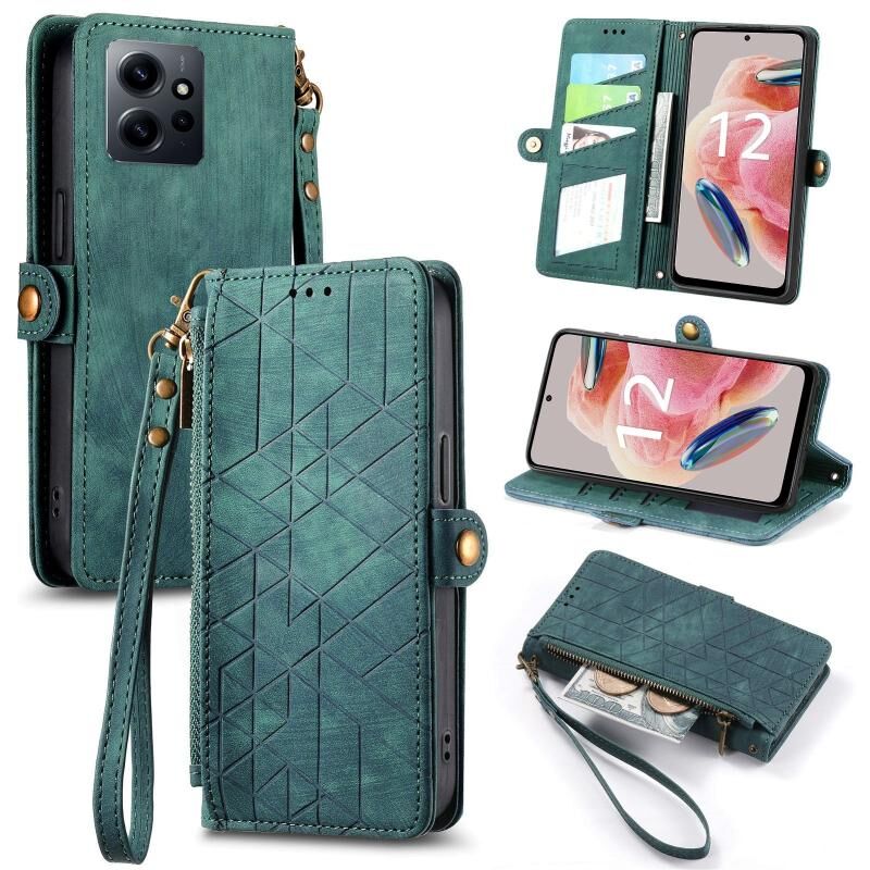 Για Xiaomi Redmi Σημείωση 12 4G γεωμετρική φερμουάρ πορτοφόλι πλευρά πόρπη δερμάτινη θήκη τηλεφώνου (πράσινο)