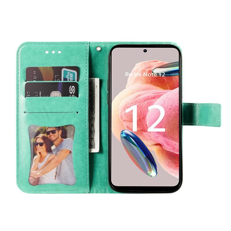 Για Xiaomi Redmi Note 12 4G Global 7-πέταλο λουλούδια ανάγλυφη δερμάτινη θήκη τηλεφώνου (πράσινο)