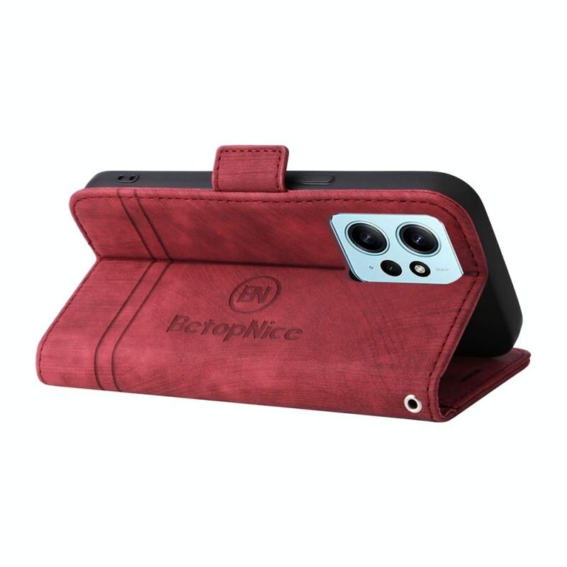 Για Xiaomi Redmi Note 12 4G Global BETOPNICE Διπλής όψης δερμάτινη θήκη τηλεφώνου με αγκράφα (κόκκινο) (BETOPNICE)