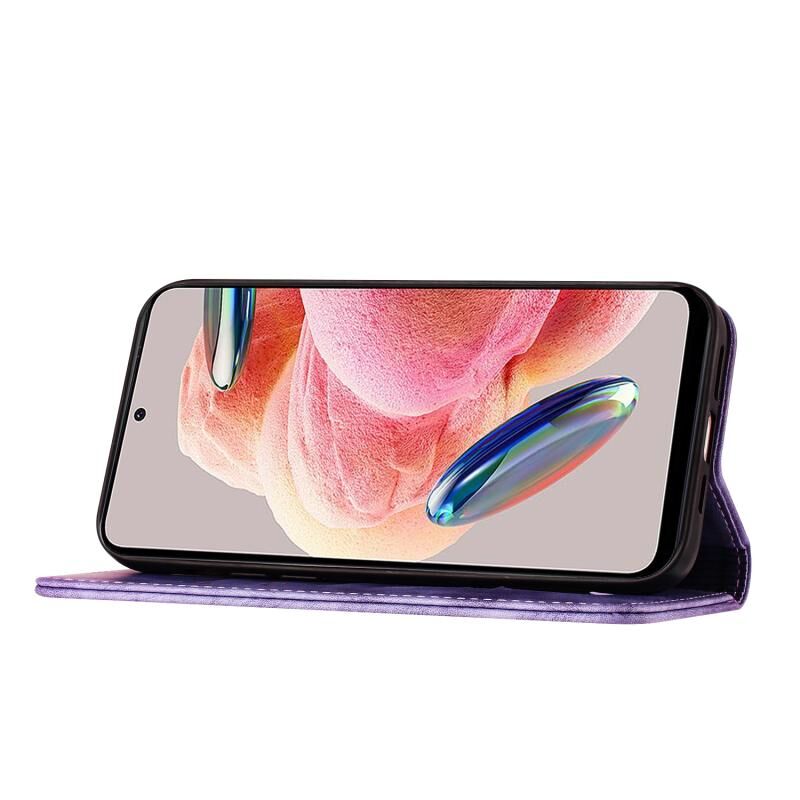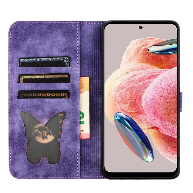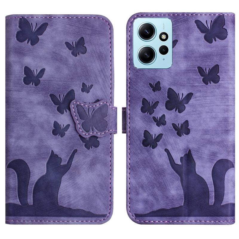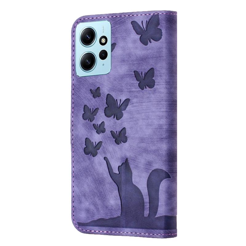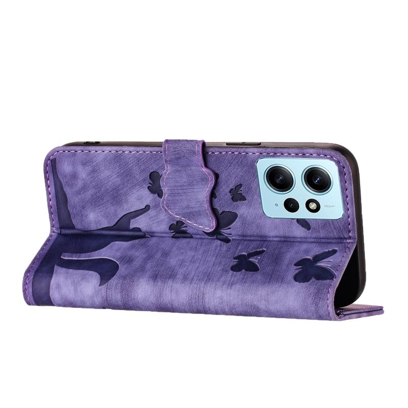 Θήκη δερμάτινη flip με σχέδιο πεταλούδας και γάτας για Xiaomi Redmi Note 12 4G Global (Μωβ)