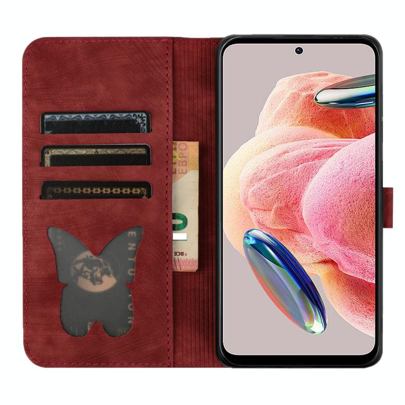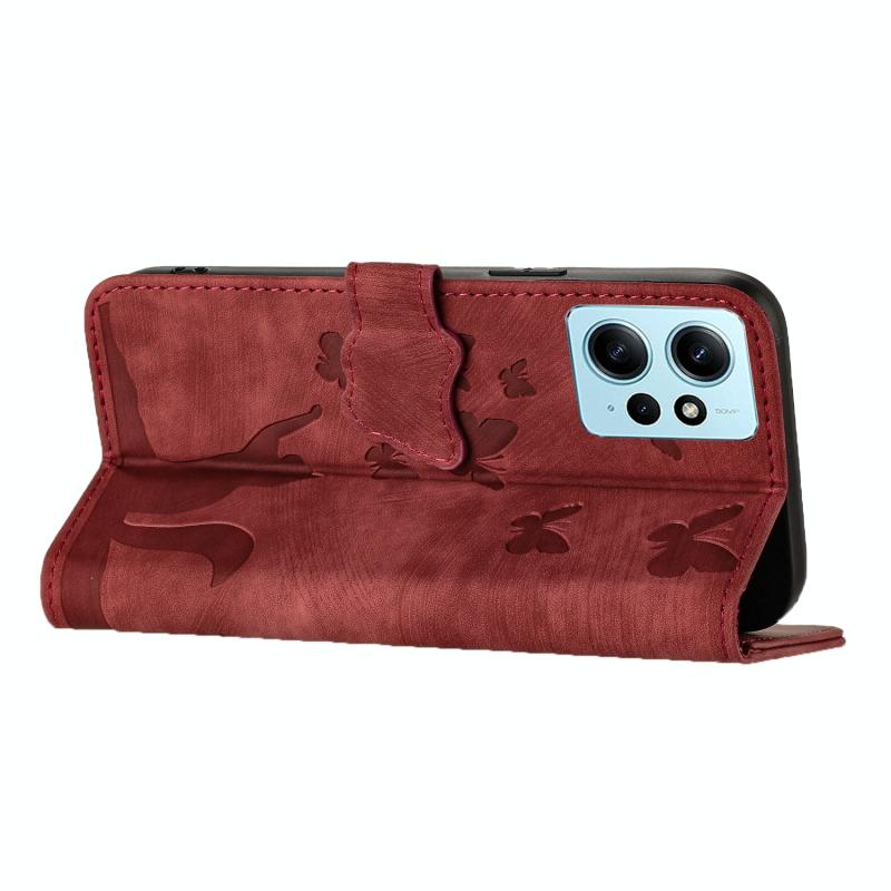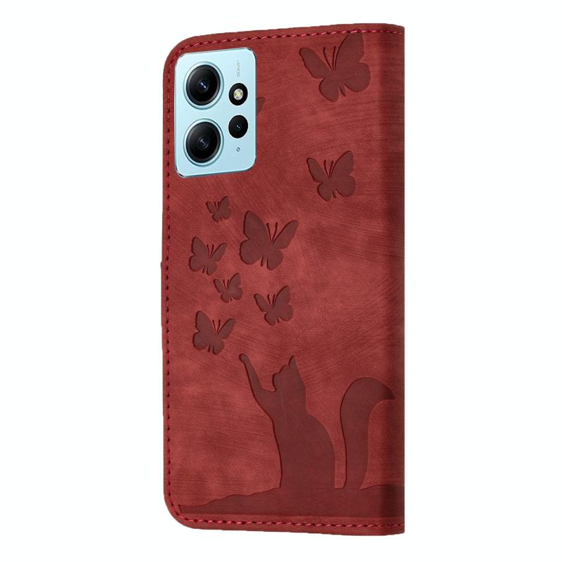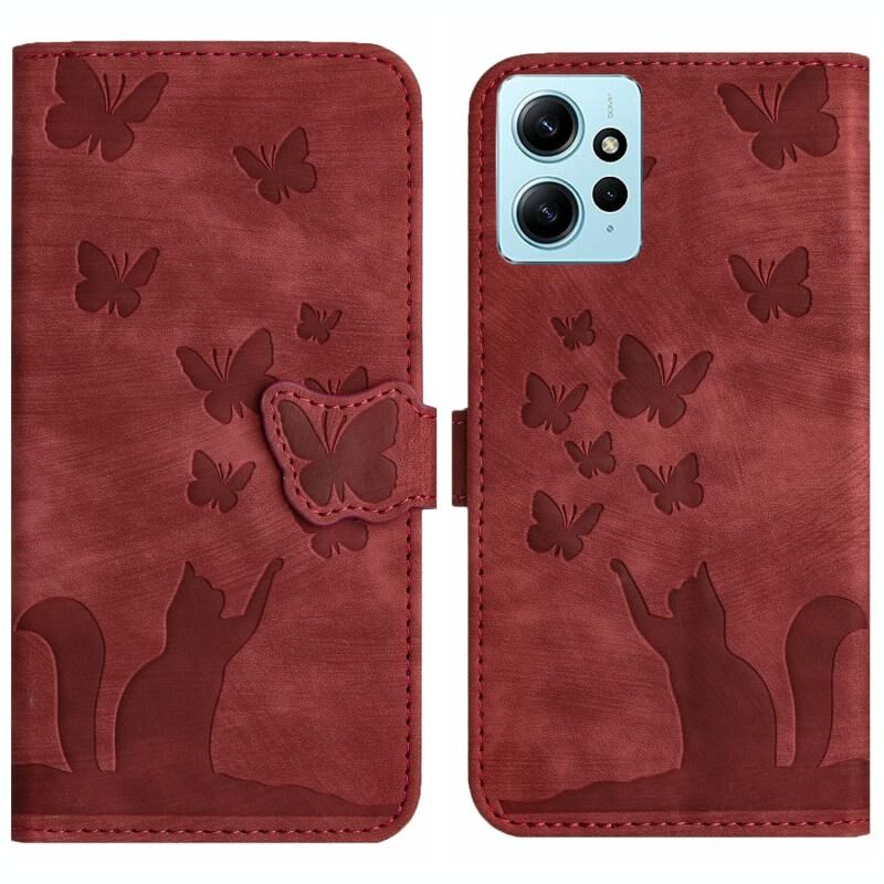 Θήκη δερμάτινη flip με σχέδιο πεταλούδας και γάτας για Xiaomi Redmi Note 12 4G Global (Κόκκινο)