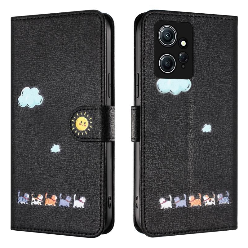 Θήκη τηλεφώνου από δέρμα με σχέδια καρτούν γάτας για Xiaomi Blackmi Note 12 4G Global (Κόκκινο)