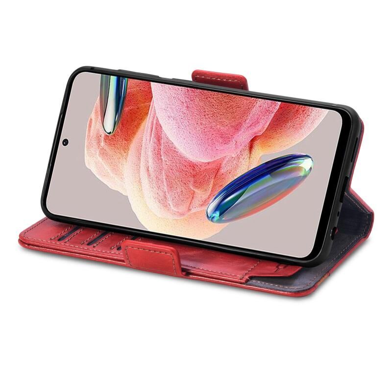 Για Xiaomi Redmi Note 12 4G Global CaseNeo Splicing Διπλή μαγνητική πόρπη δερμάτινη θήκη τηλεφώνου (Κόκκινο)