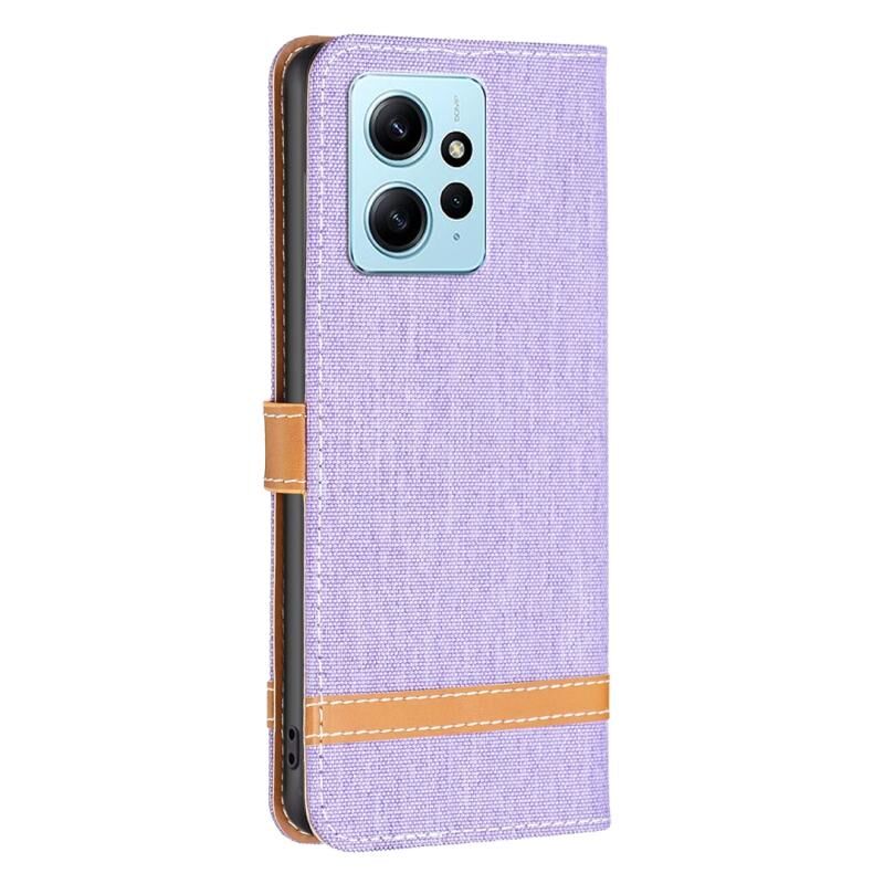 Για Xiaomi Redmi Note 12 4G Global Color Block Denim Texture δερμάτινη θήκη τηλεφώνου (μωβ)