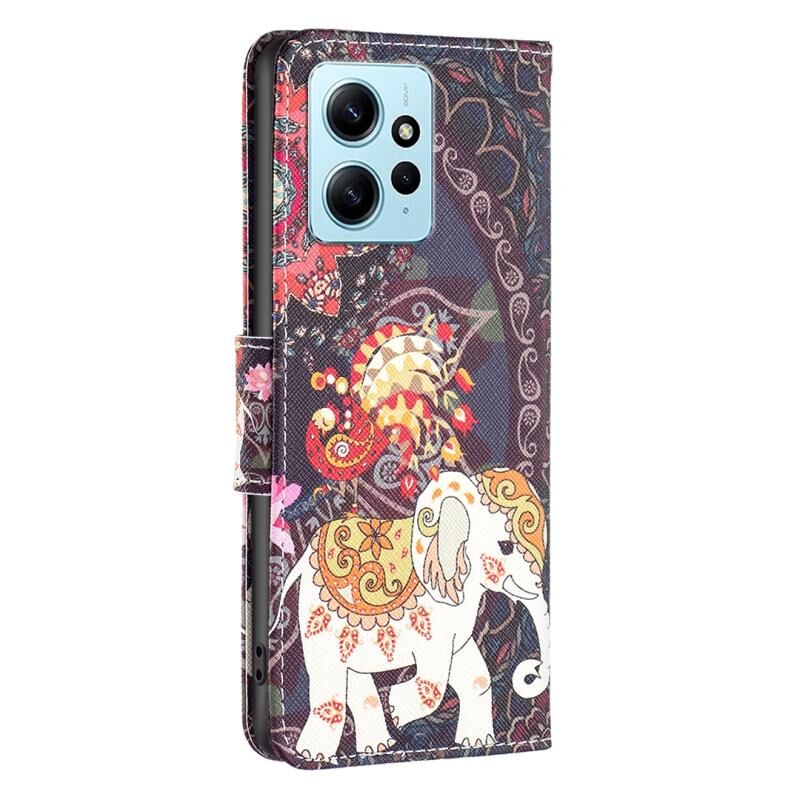 Θήκη τηλεφώνου από δέρμα με έγχρωμη σχεδίαση για Xiaomi Redmi Note 12 4G Global (Λουλούδια Ελέφαντας)