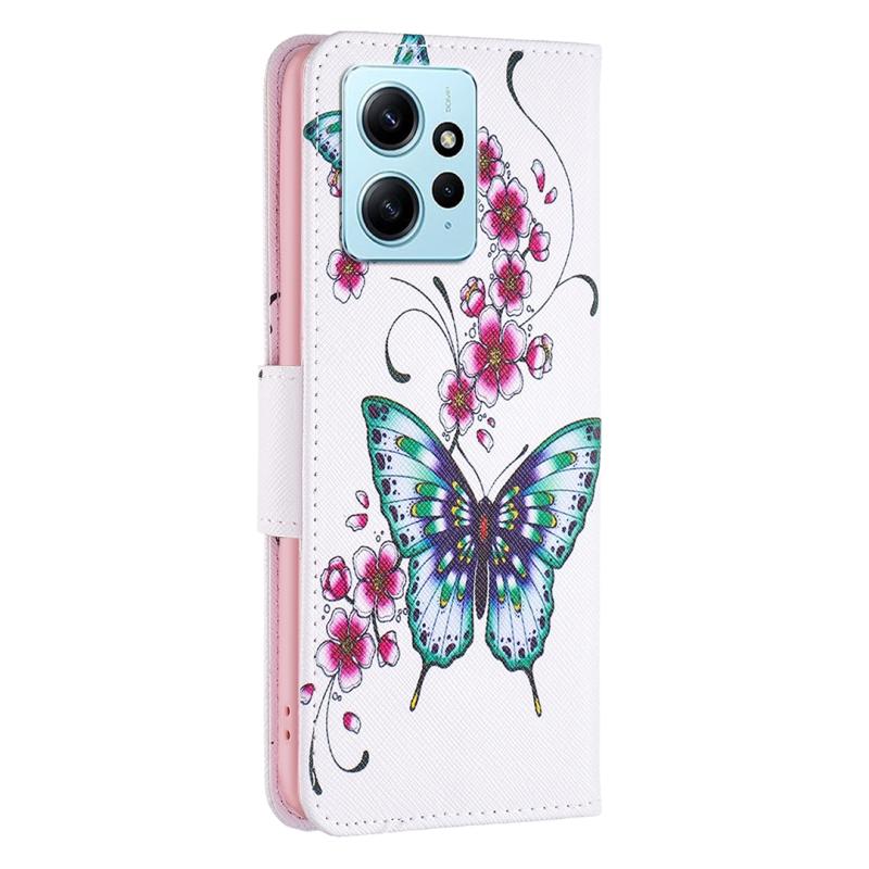 For Xiaomi Redmi Note 12 4G Global Colored Drawing Leather Phone Case(Peach Blossom Butterfly)