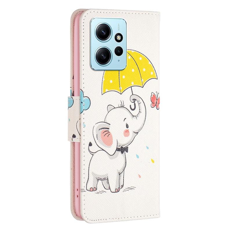 For Xiaomi Redmi Note 12 4G Global Colored Drawing Leather Phone Case(Umbrella Elephant)