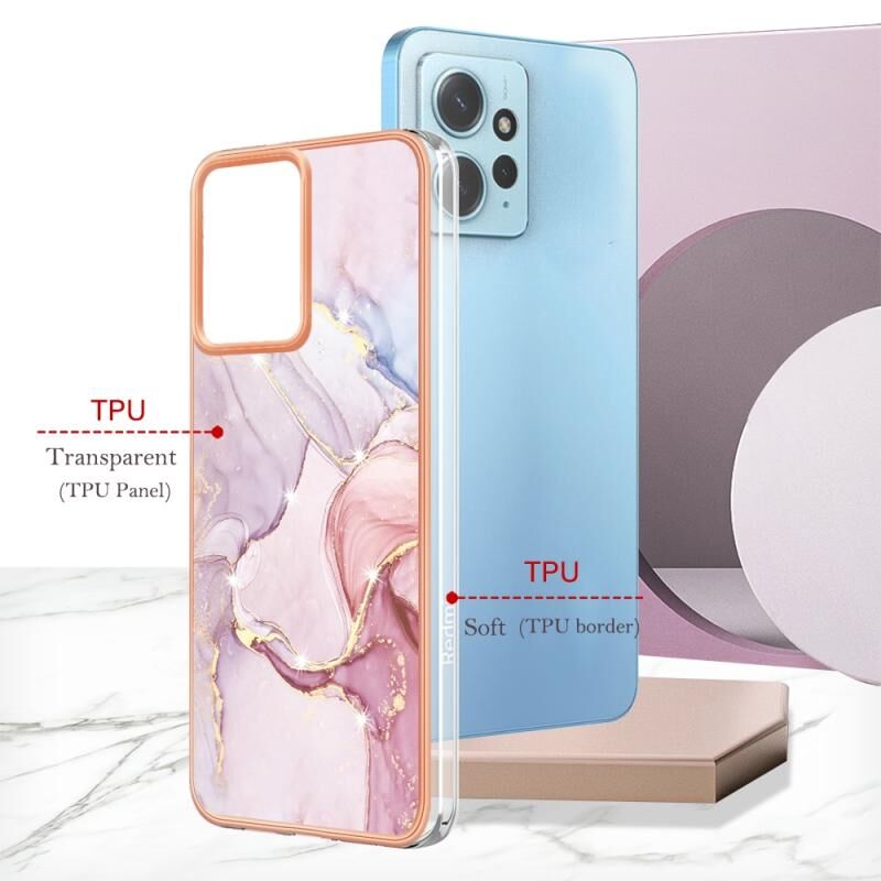 Για Xiaomi Redmi Note 12 4G Global Θήκη Τηλεφώνου με Ηλεκτρολυτική Επικάλυψη, Διπλής Όψης IMD, σε Σχέδιο Μαρμάρου (Ροζ Χρυσός 005)