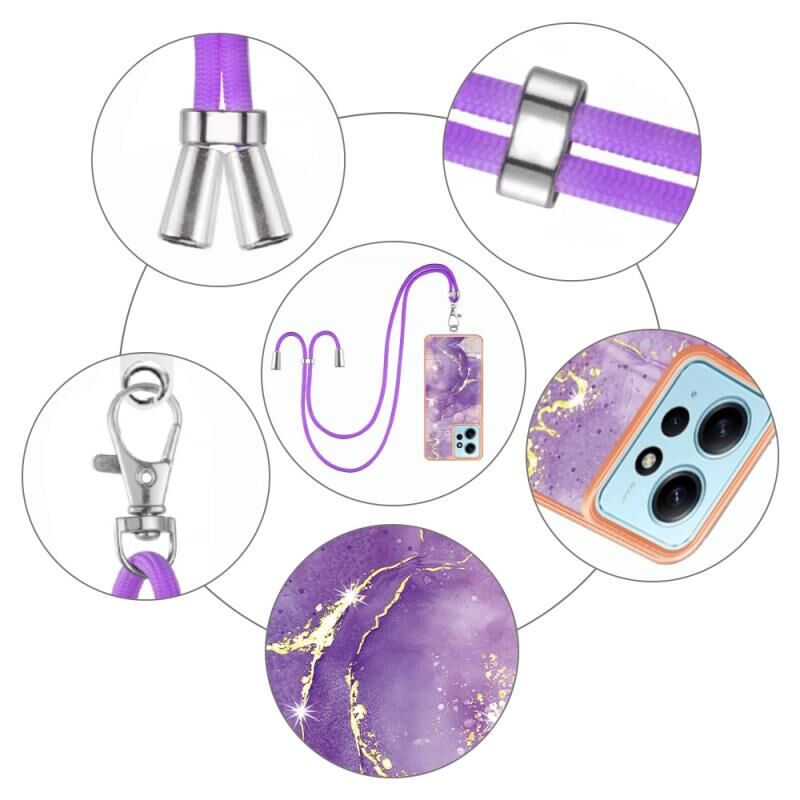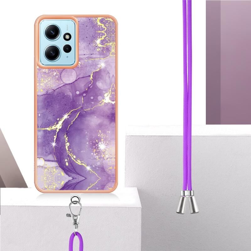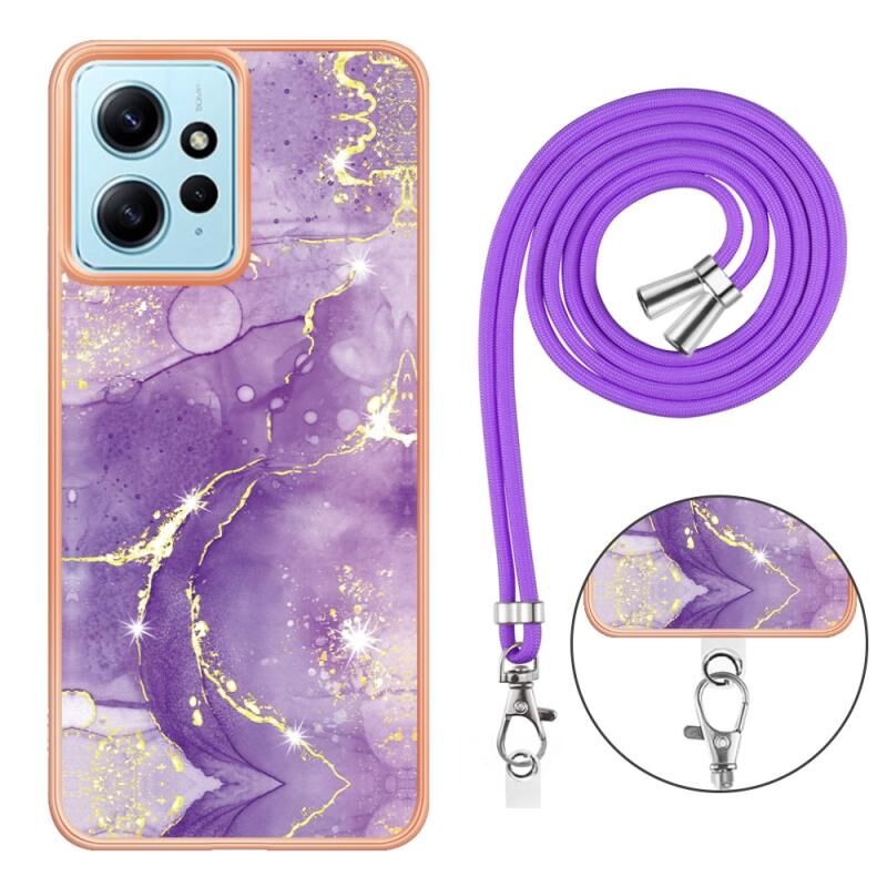 Για Xiaomi Redmi Note 12 4G Global Θήκη Τηλεφώνου με Επιμετάλλωση Μαρμάρου Διπλής Όψης IMD με Λουρί (Μωβ 002)